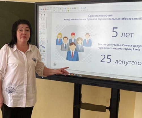 Ольга Родионова рассказала о структуре и полномочиях органов власти, о выборах депутатов областного Совета депутатов и Совета депутатов городского округа город Елец, о сроках полномочий.