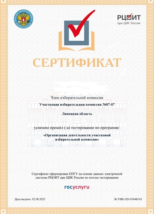 По итогам обучения все 42 члена четырёх участковых избирательных комиссий прошли тестирование и получили сертификаты.