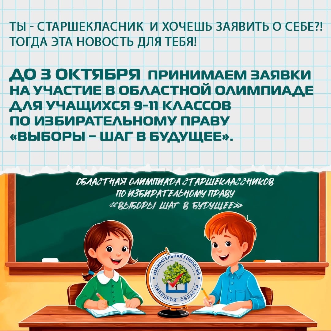 До 3 октября подай заявку на участие в областной олимпиаде для учащихся 9-11 классов по избирательному праву «ВЫБОРЫ – ШАГ В БУДУЩЕЕ».