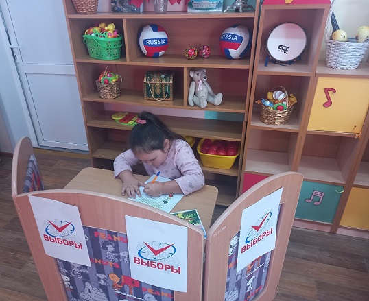 Организаторы выборов объяснили воспитанникам детского сада, что каждый человек имеет право принимать участие в выборах и голос каждого избирателя важен.
