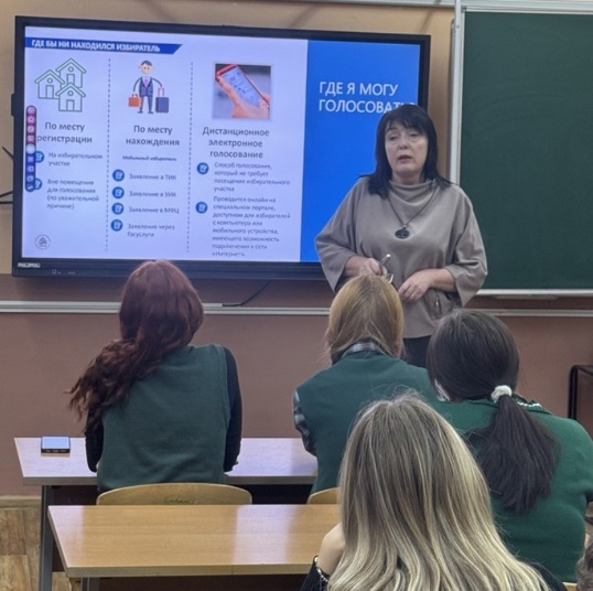 В ходе встречи будущие избиратели познакомились с основами и принципами избирательного права, с организацией избирательного процесса, с системой избирательных комиссий, узнали, кто имеет право принять участие в голосовании.